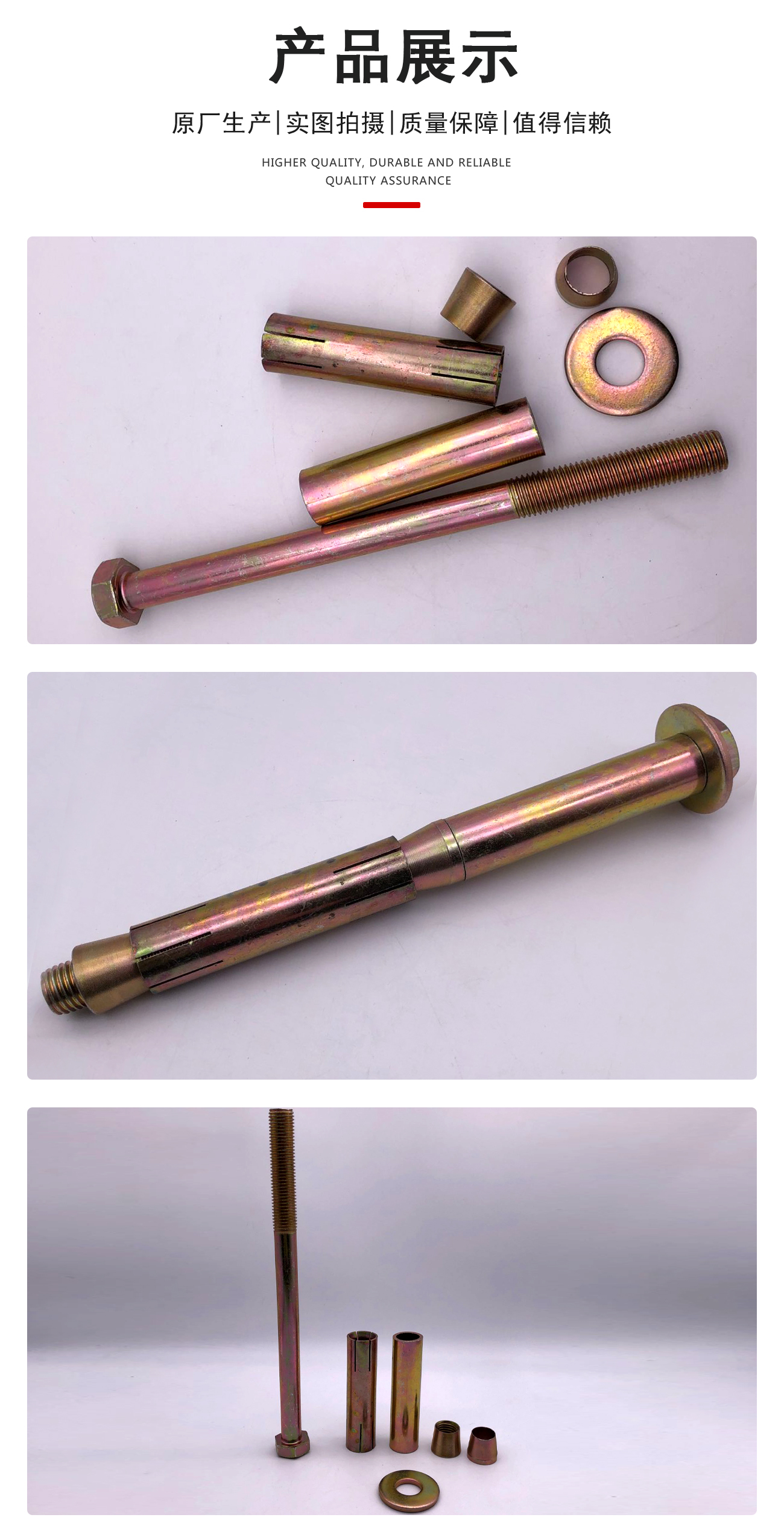 YG型系列脹錨螺栓(膨脹螺栓)可以定制電鍍鋅,熱鍍鋅,達(dá)克羅,滲鋅,級(jí)別有4.8級(jí) 5.8級(jí) 6.8級(jí)8.8級(jí)10.9級(jí)12.9級(jí),全方位的為客戶 提供各種需要保障