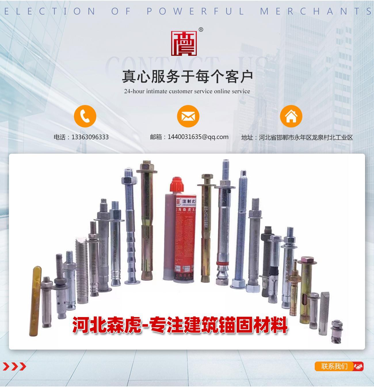 主要生產(chǎn):化學(xué)錨栓、機(jī)械錨栓、定型化學(xué)錨栓、高強(qiáng)度8.8級(jí)化學(xué)錨栓、自切底錨栓、車修壁虎,膨脹螺栓,植筋膠等,產(chǎn)品暢銷全國(guó)