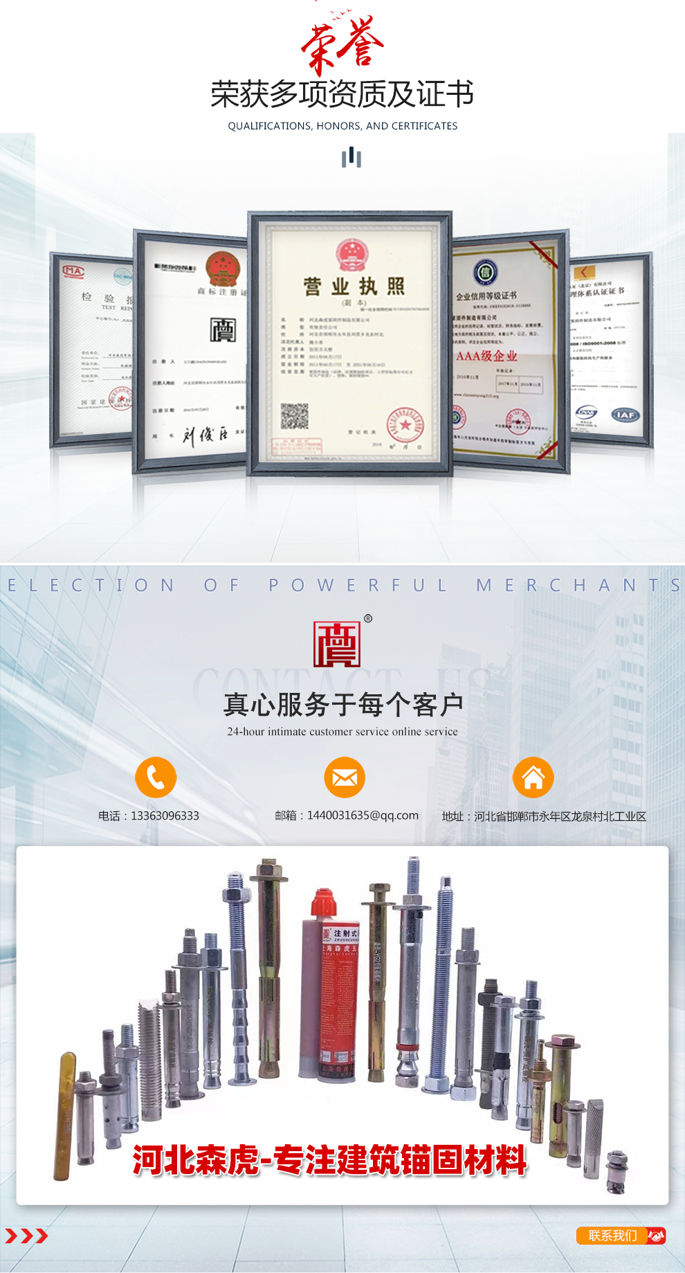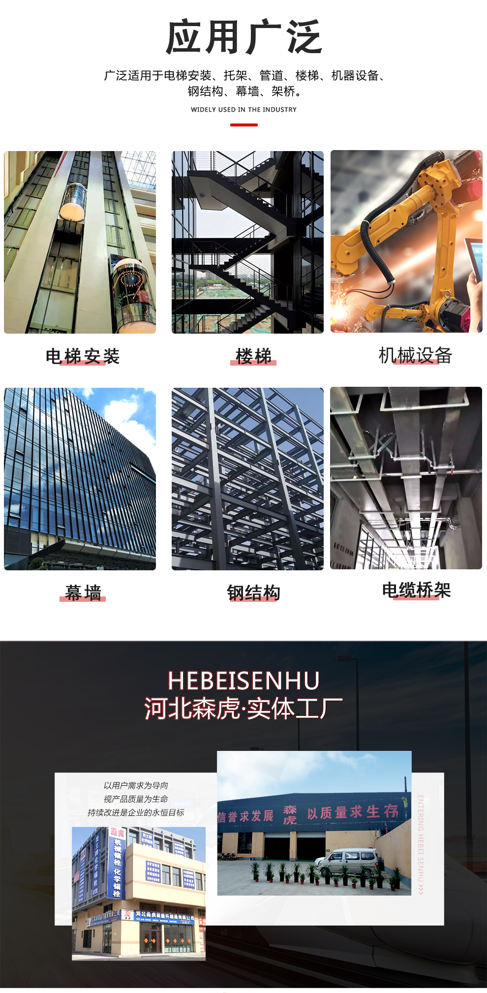 主要生產(chǎn):化學錨栓、機械錨栓、定型化學錨栓、高強度8.8級化學錨栓、自切底錨栓、車修壁虎,膨脹螺栓,植筋膠等,產(chǎn)品暢銷全國